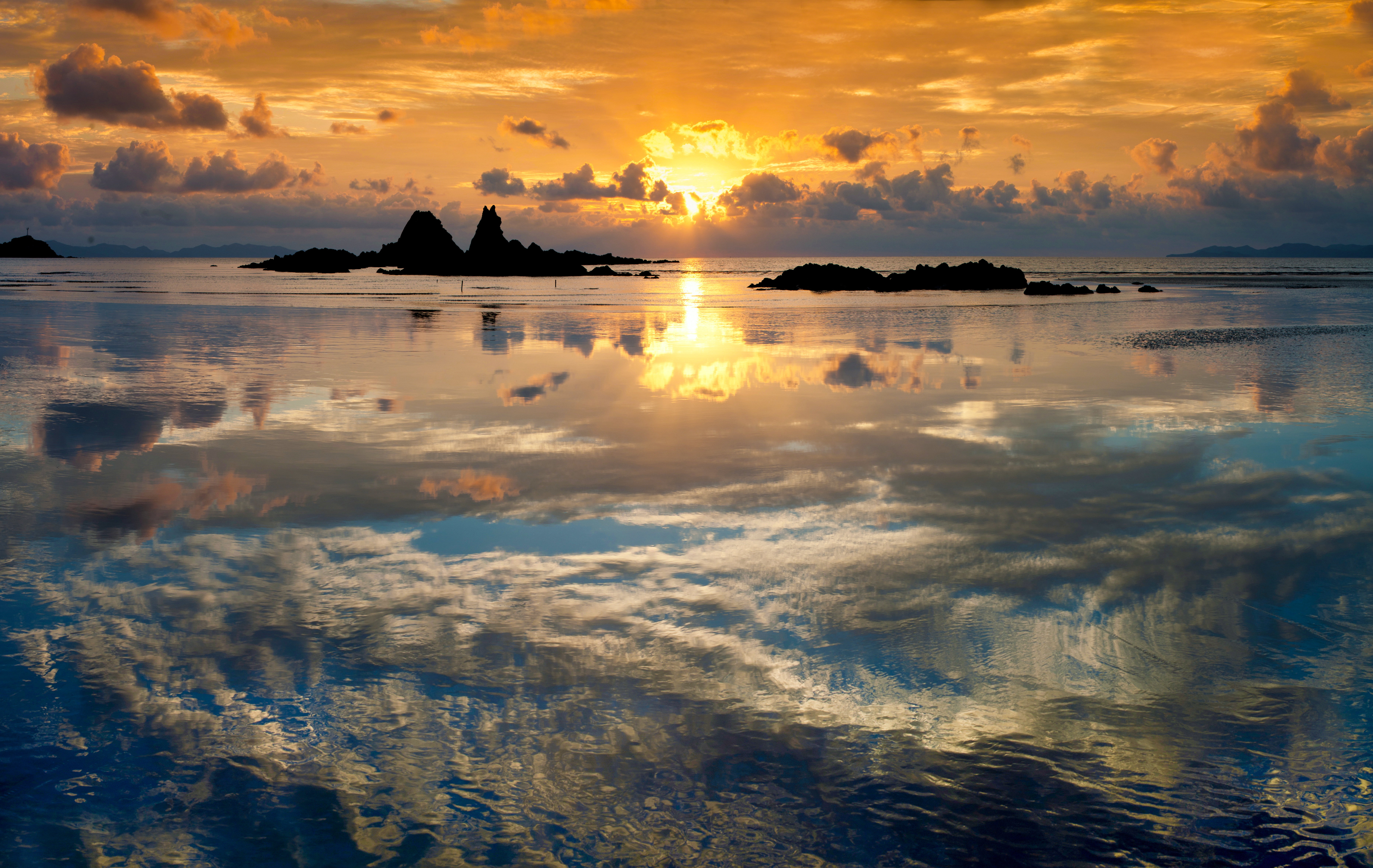 普陀山是中國浙江省舟山群島中的一個島嶼,也是中國四大佛教名山之一,是大慈大悲觀音菩薩的道場。西元824年,唐代日本僧人慧鍔大師,從五臺山得觀音佛像歸國,途經普陀山,準備在此渡海。第一天本來是晴空萬裏,但一開船,便狂風暴雨,他只好退回暫住。第二天,風雨一直沒有停。第三天是好天氣,慧鍔打算駕船趕路。但船剛一駛離岸邊,便被一朵朵鐵蓮花團團圍住。慧鍔頓悟,從船艙中請出觀音像供在船頭,跪拜道,如果觀音大士不願東渡扶桑,他可隨觀音心願,在此擇地供奉。話音剛落,海面開闢出一條航道,慧鍔的船就順著航道隨波漂到如今的「不肯去觀音院」處。從此,普陀山有了第一處供奉觀音的道場,慧鍔也成為普陀山的開山祖師,也是普陀山觀音道場的發源地。